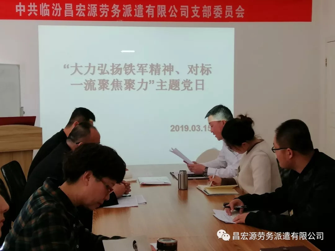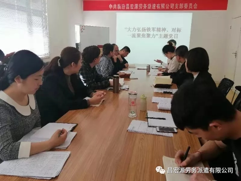 3月15日下午,臨汾昌宏源勞務(wù)派遣公司黨支部開(kāi)展了“大力弘揚(yáng)鐵軍精神、對(duì)標(biāo)******聚焦聚力”為主題的黨日活動(dòng)。