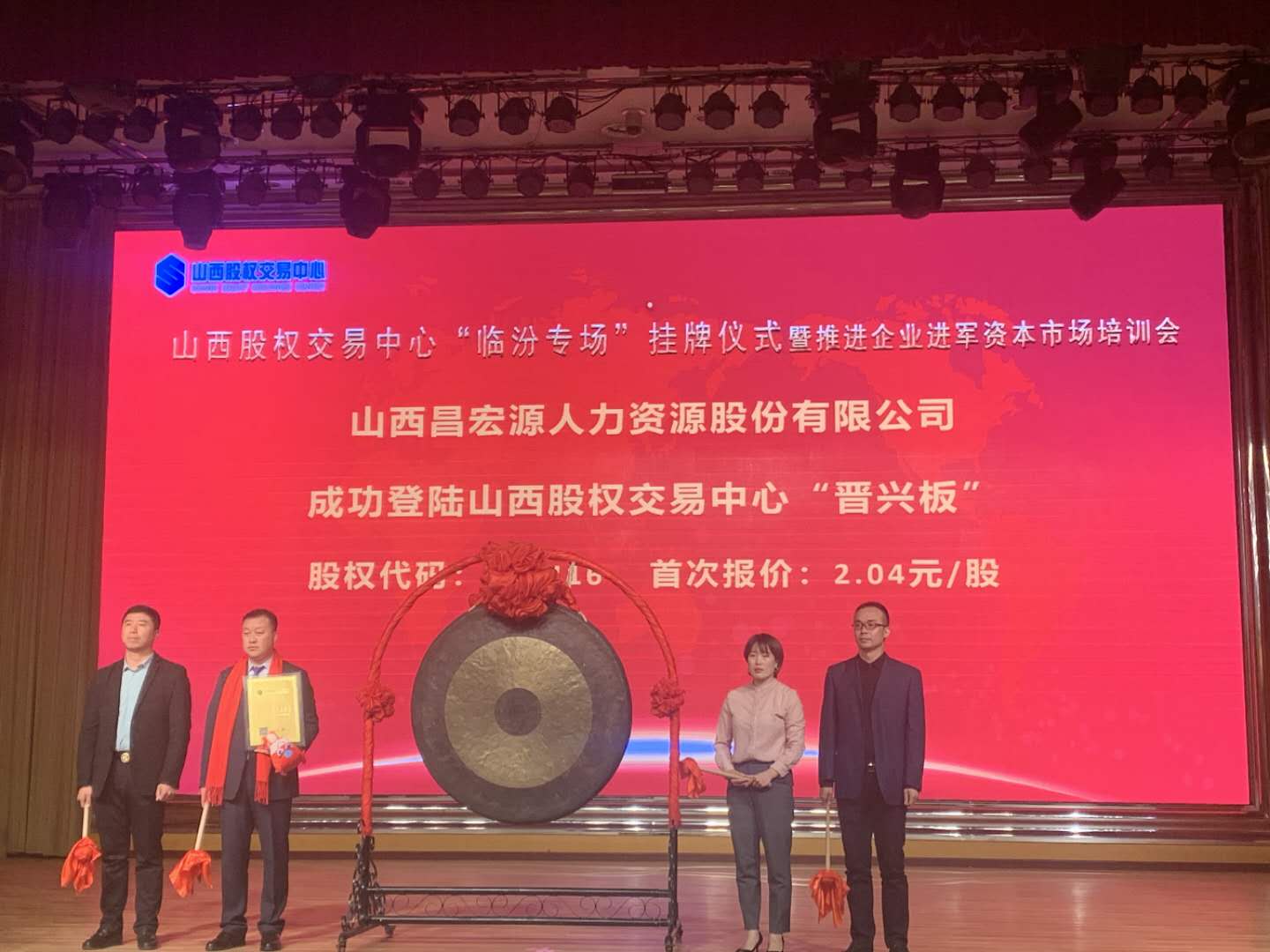 山西股權(quán)交易中心“臨汾專場(chǎng)”掛牌儀式暨推進(jìn)企業(yè)進(jìn)軍資本市場(chǎng)培訓(xùn)會(huì)在20201023日上午順利召開。山西昌宏源人力資源股份有限公司成功登陸山西股權(quán)交易中心“晉興板”。