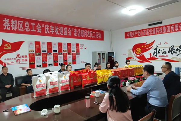 臨汾市堯都區(qū)總工會開展“慶豐收迎盛會”走訪慰問農(nóng)民工活動--之走進昌宏源人力資源股份有限公司送溫暖
